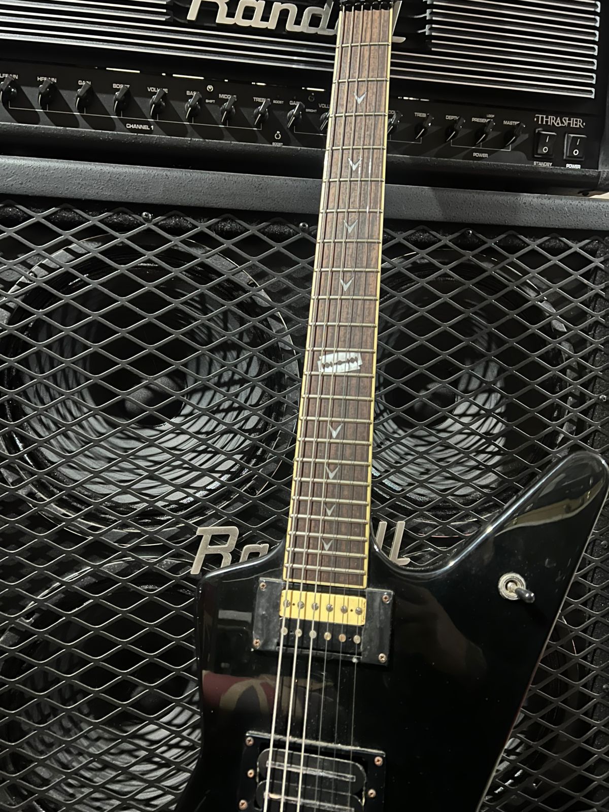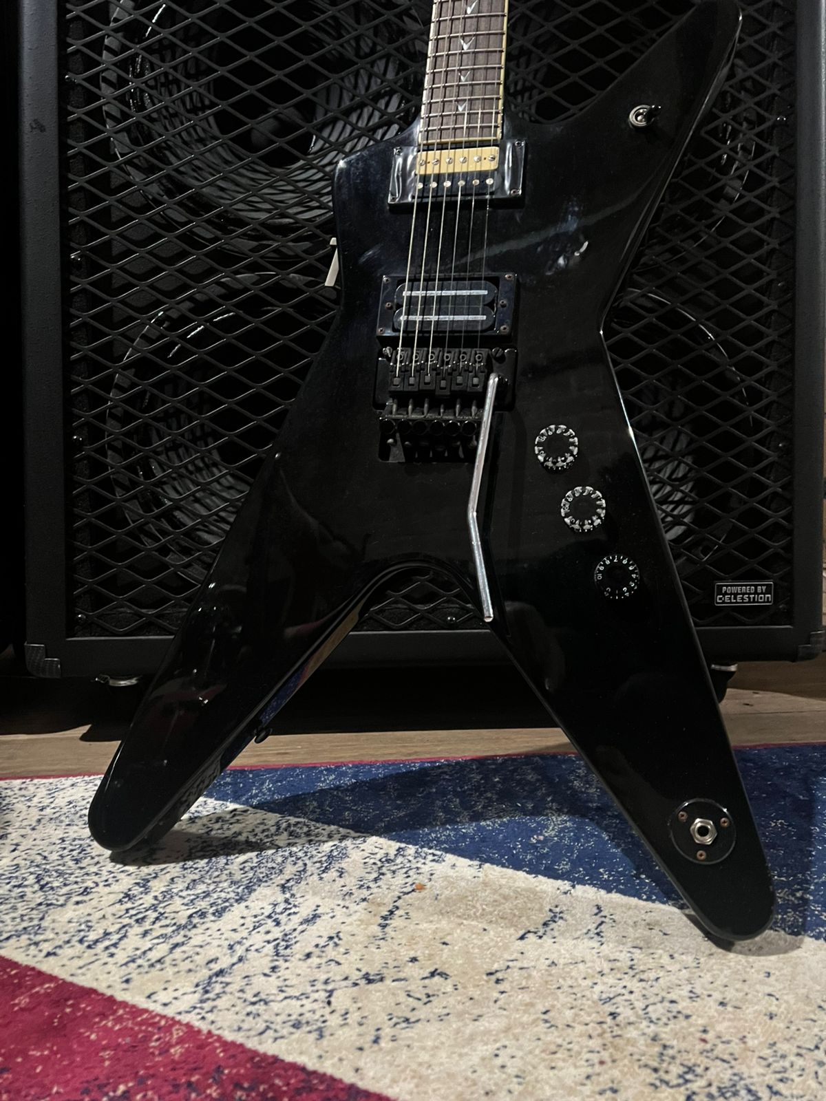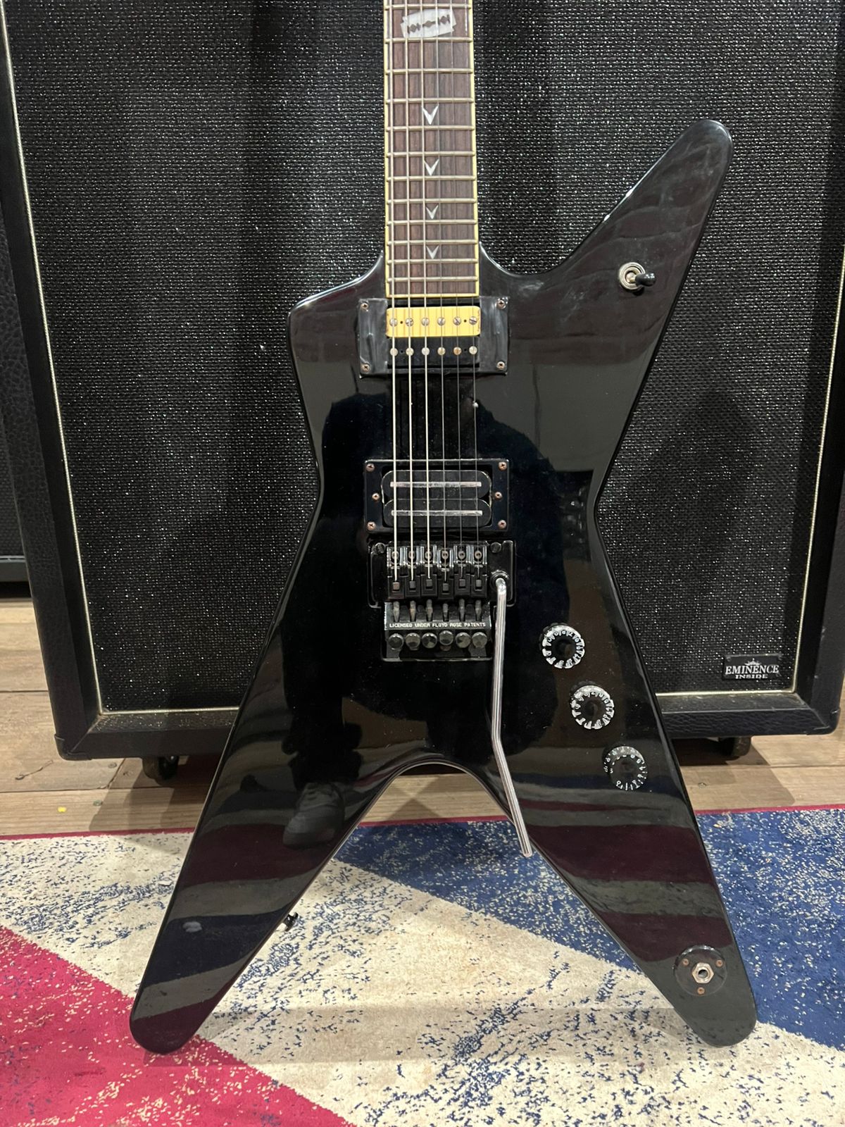 A Dean Dime Shadow ML é um guitarra elétrica em forma de ML com um corpo de mogno e um braço de mogno definido, apresentando uma escala de jacarandá com incrustações de navalha “Dime” de pérola. Equipada com um captador de ponte e braço DMT Design humbucker. A guitarra inclui um sistema de tremolo licenciado por Floyd Rose, afinadores Grover e botões de tração Dime, todos projetados para estilos de alto desempenho.